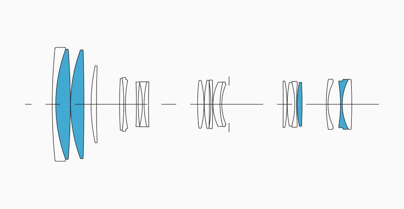 | Optischer Aufbau (Linsen/Gruppen) | 21 Elemente in 15 Gruppen | |