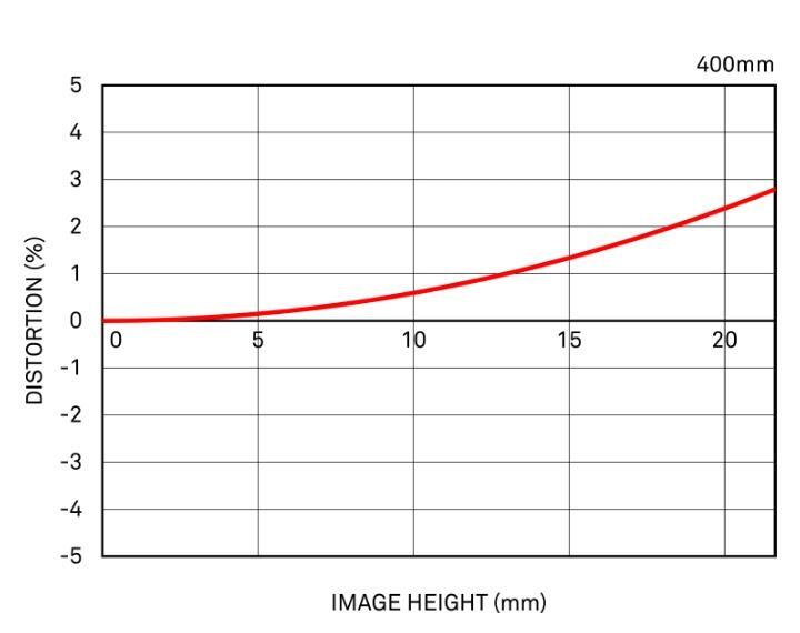 In diesem Diagramm zeigt die horizontale Achse die ideale Bildhöhe (den Abstand vom Zentrum bis zum Bildrand [mm]). Die vertikale Achse zeigt den Grad der Verzeichnung. Der Grad der Verzeichnung wird dadurch dargestellt, wie stark Y, also die tatsächliche Bildhöhe, im Vergleich zu Y₀, der idealen Bildhöhe, zunimmt oder abnimmt.