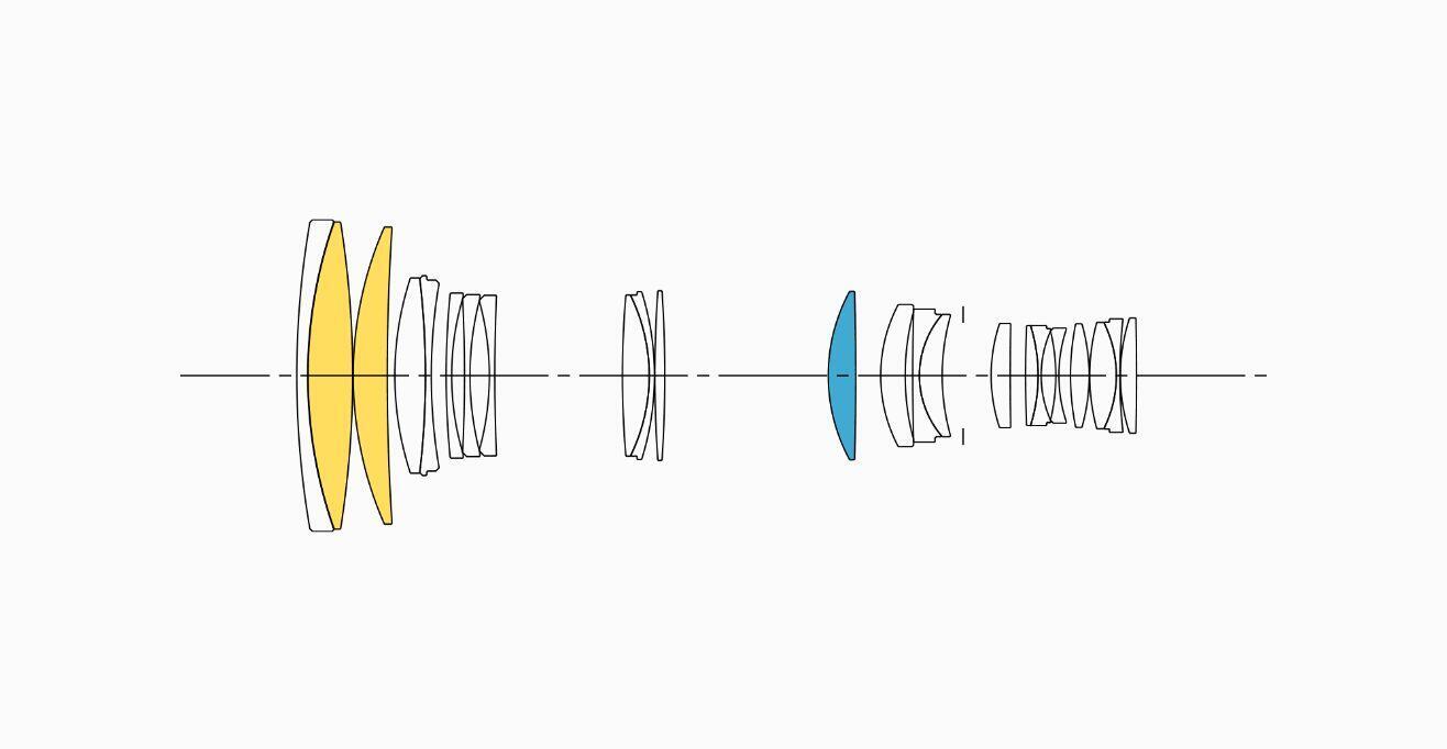 | Optischer Aufbau (Linsen/Gruppen) | 23 Elemente in 18 Gruppen | |
