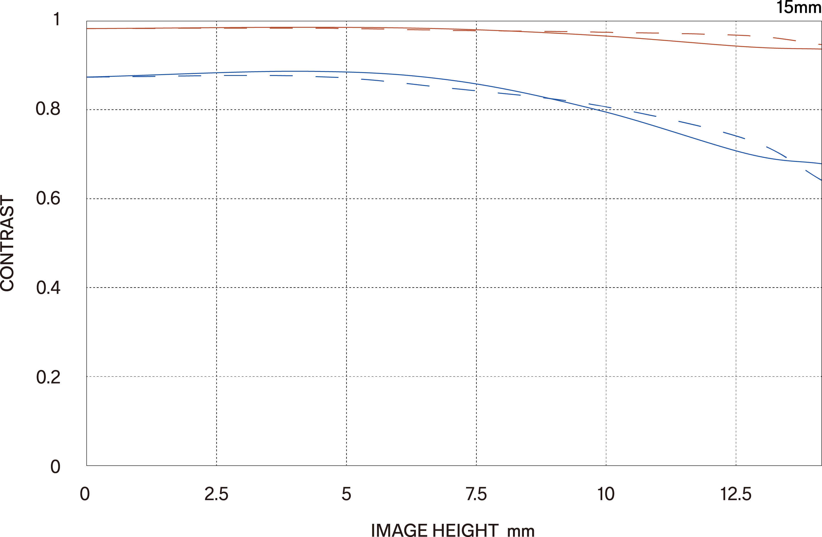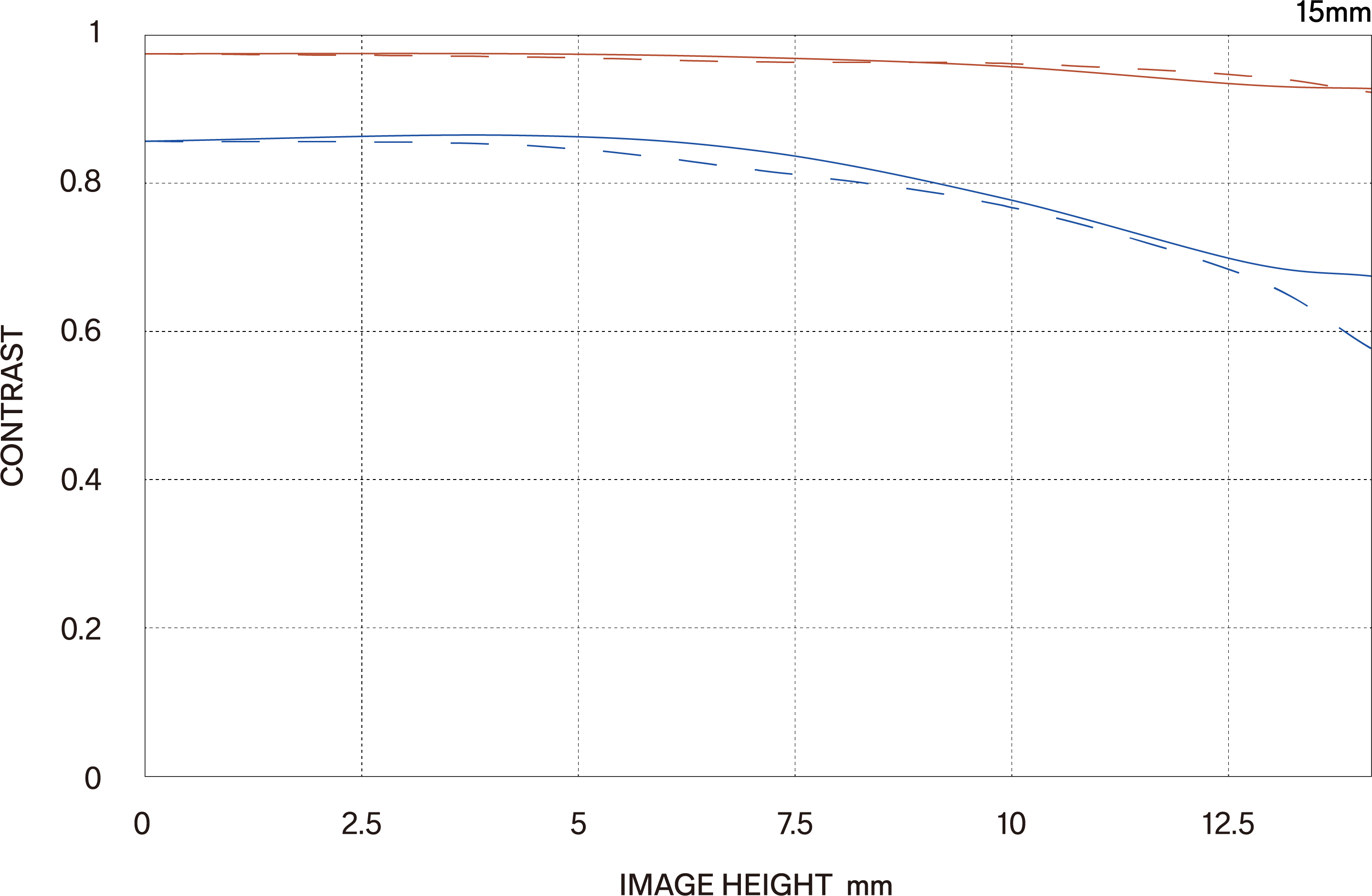 Es gibt zwei Arten von MTF-Diagrammen. Das eine berücksichtigt die Beugungsqualität des Lichts und wird „Diffraction MTF“ genannt, das andere, „Geometrical MTF“, berücksichtigt diese nicht.