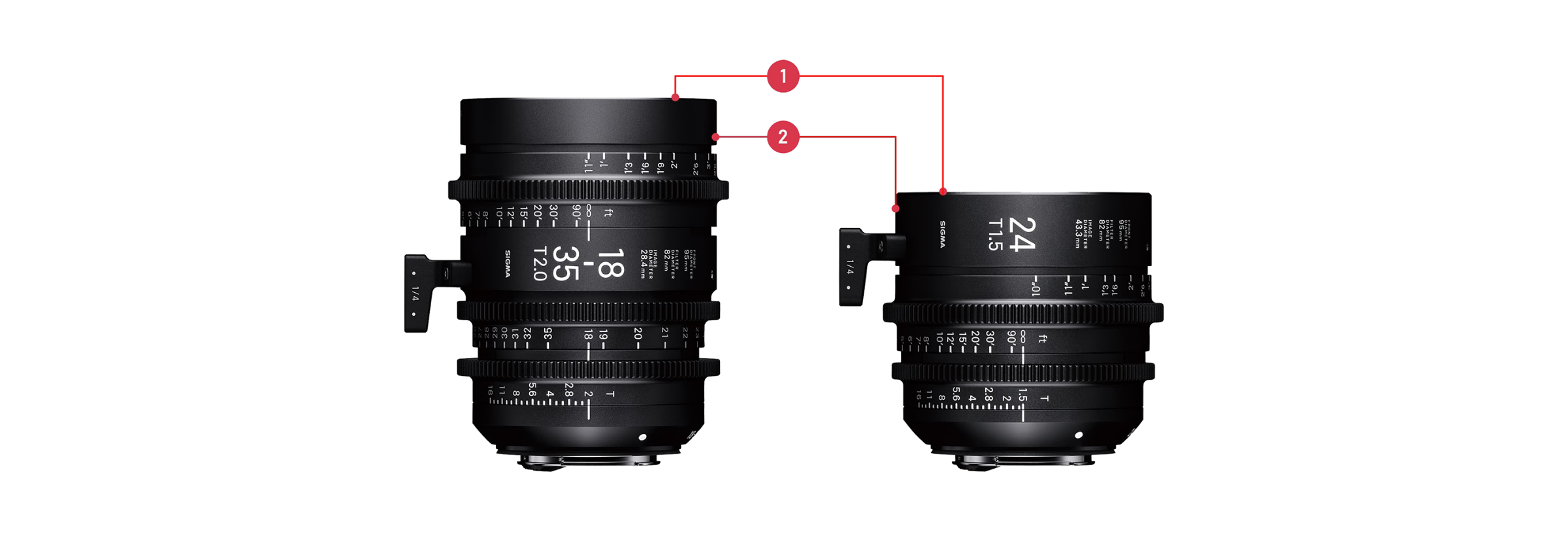 Der Frontdurchmesser beträgt 95 mm, ähnlich wie bei anderen Cine-Objektiven und kompatibel mit Matte-Boxen. Im Vergleich zu Objektiven derselben Klasse sind die Cine-Objektive von Sigma leichter und kompakter.