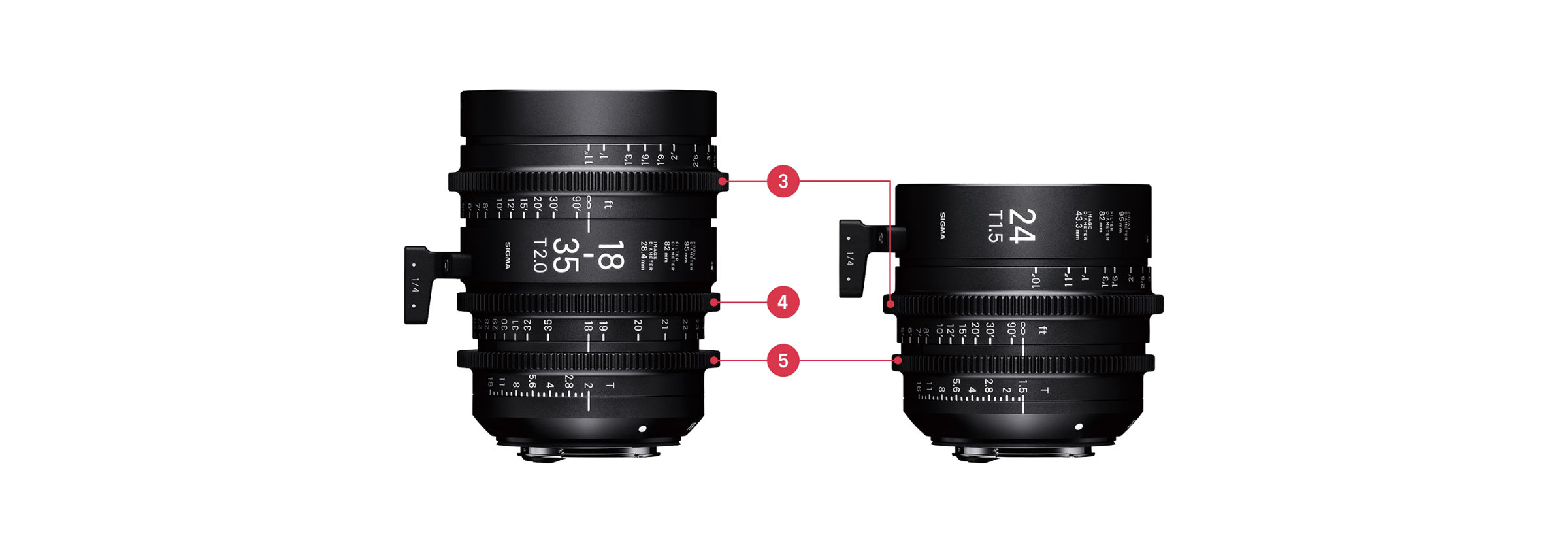 Verfügbare Objektivanschlüsse sind der Canon-EF-Anschluss, der bei den meisten digitalen Filmkameras verwendet wird, und der Sony-E-Mount, der in der Sony-FS-Serie zum Einsatz kommt. Alle Objektive der Produktlinie können zudem an kompatiblen Fotoapparaten verwendet werden und ermöglichen hervorragende DSLR-Filmaufnahmen.