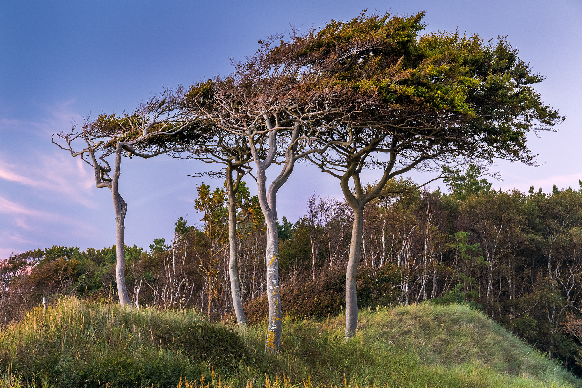 Vom Osten der Insel geht es zur Westküste, die einen ganz eigenen Charakter hat. Es handelt sich um eine Abtragungsküste, das heißt dass jedes Jahr bis zu 50cm der Küste dem Meer zum Opfer fallen und somit auch immer die dort wachsenden Bäume. Solange sie noch stehen sehen sie aber dank des stetigen Westwindes wirklich schön aus. Diese Windflüchter nehmen dann ungewöhnliche Formen an und sind definitiv ein lohnendes Motiv. Bei meinem Besuch zum Sonnenuntergang stand eigentlich nur etwas entspannte Landschaftsfotografie auf dem Plan, aber als ich plötzlich die typischen Rufe der Brandseeschwalben hörte und mitbekam, wie etwa zehn Stück direkt vor mir immer wieder ins Wasser stürzten, um sich ihr Abendessen zu organisieren, war ich durchaus froh mal wieder alles mitgeschleppt zu haben. Also habe ich schnell auf das 500mm gewechselt und die Speicherkarte glühen lassen.