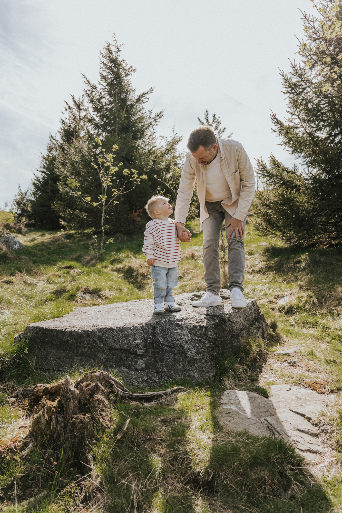 Die Lichtverhältnisse waren an diesem Tag eine kleine Herausforderung – die Sonne stand hoch und schien ziemlich stark. Um harte Schatten im Gesicht zu vermeiden, achtete ich darauf, möglichst oft im Schatten zu fotografieren oder die Sonne bewusst im Rücken zu nutzen. Gerade bei Familienshootings in der Natur ist es mir wichtig, das vorhandene Licht bestmöglich einzusetzen, damit die Aufnahmen natürlich und stimmungsvoll wirken.