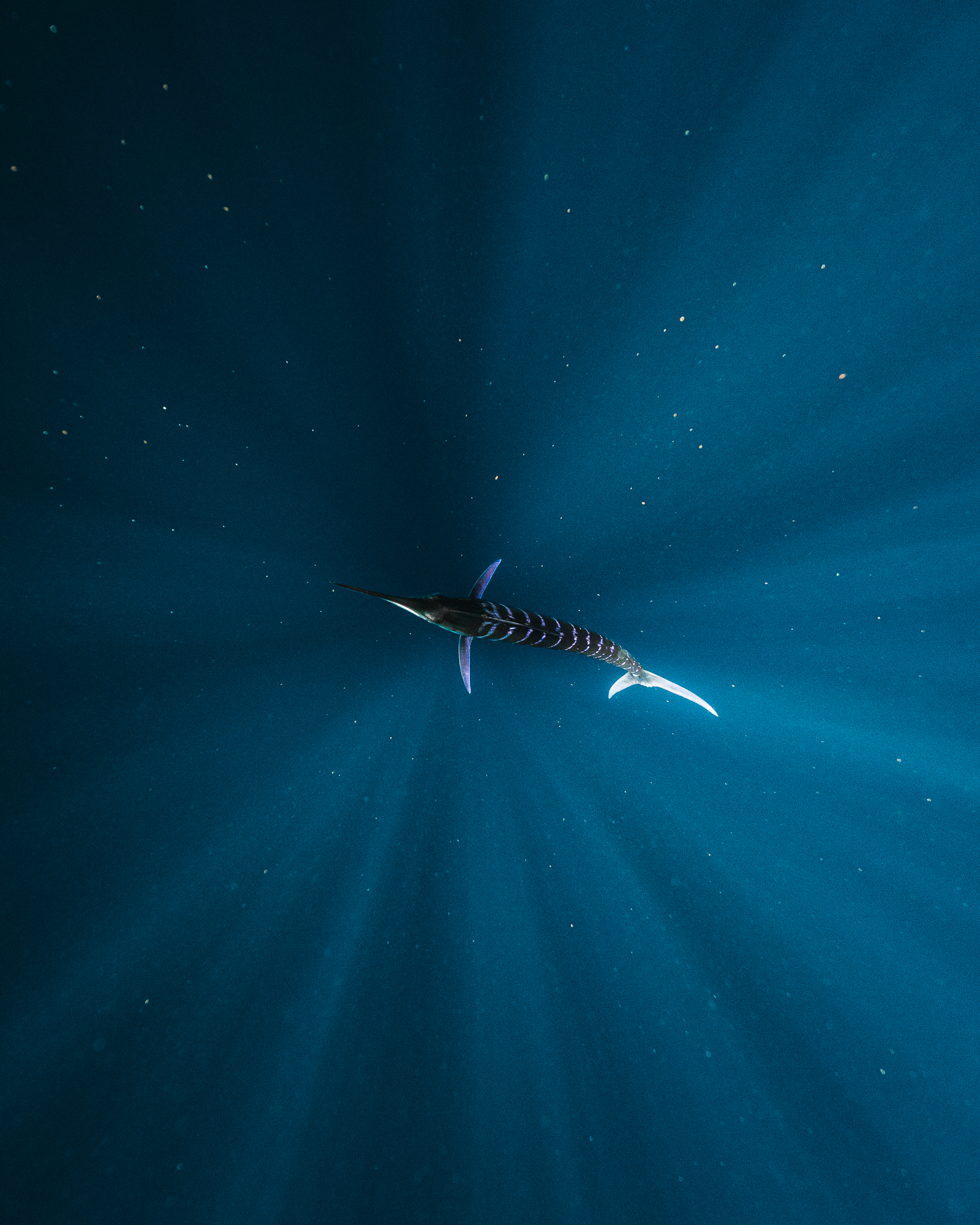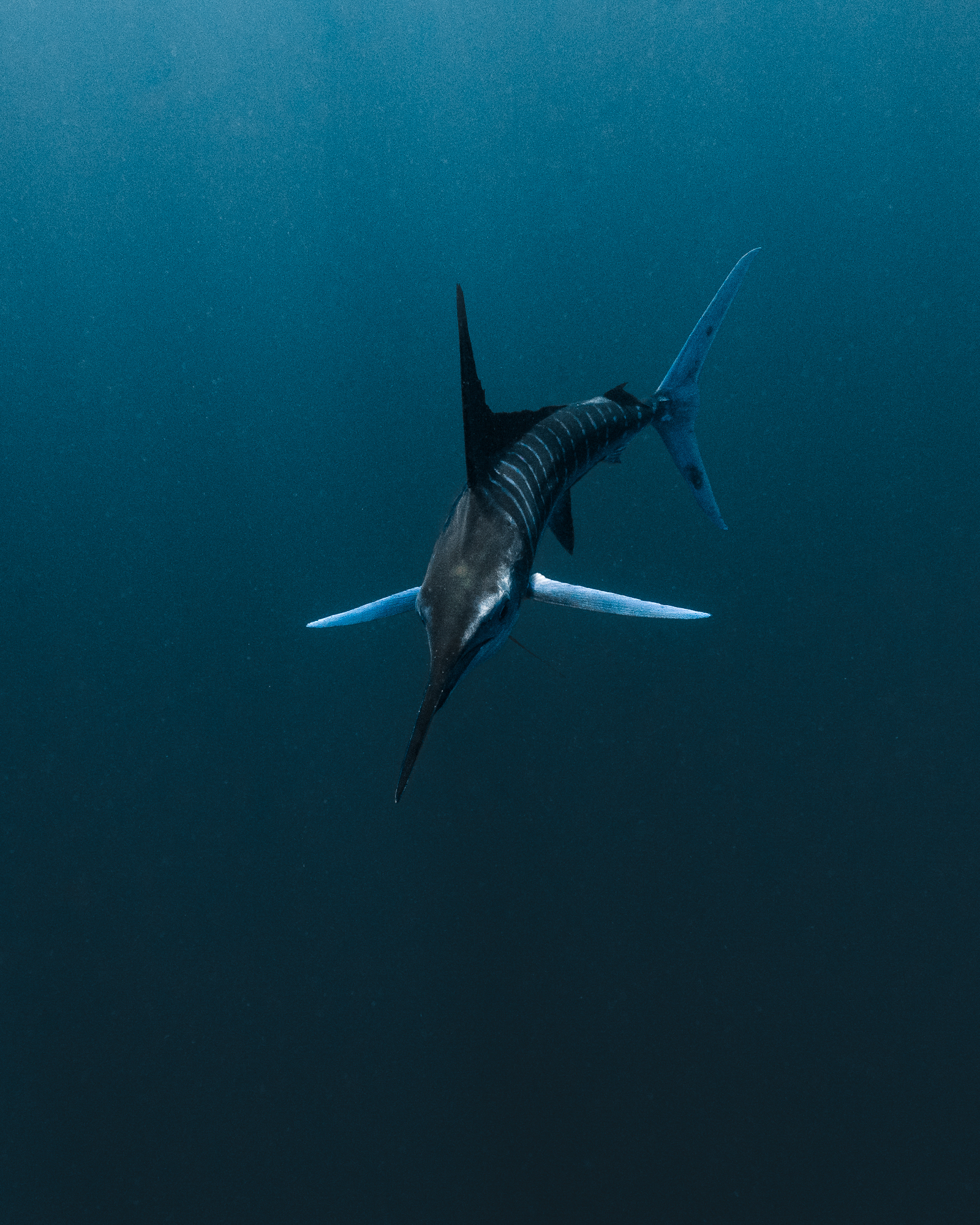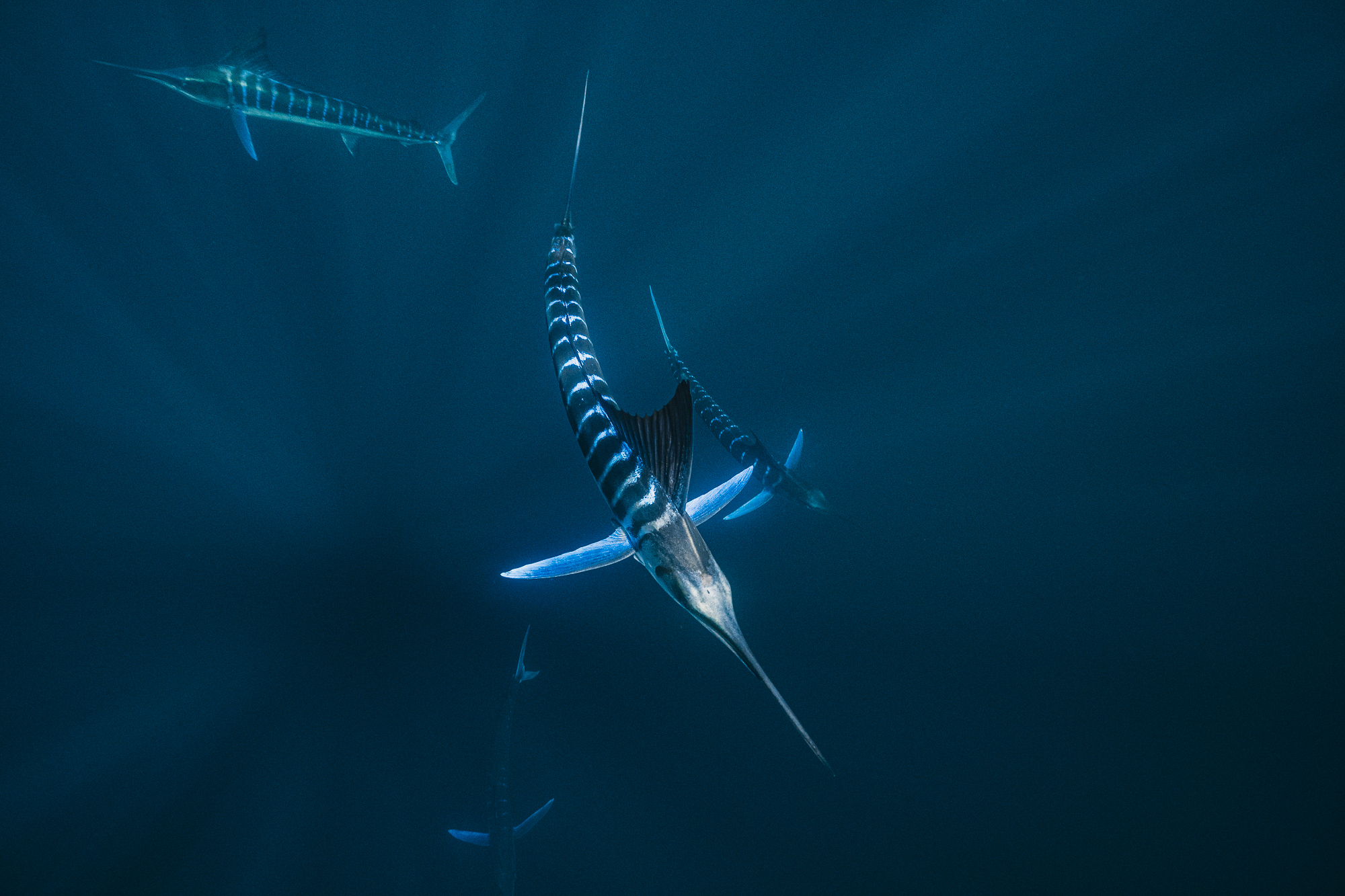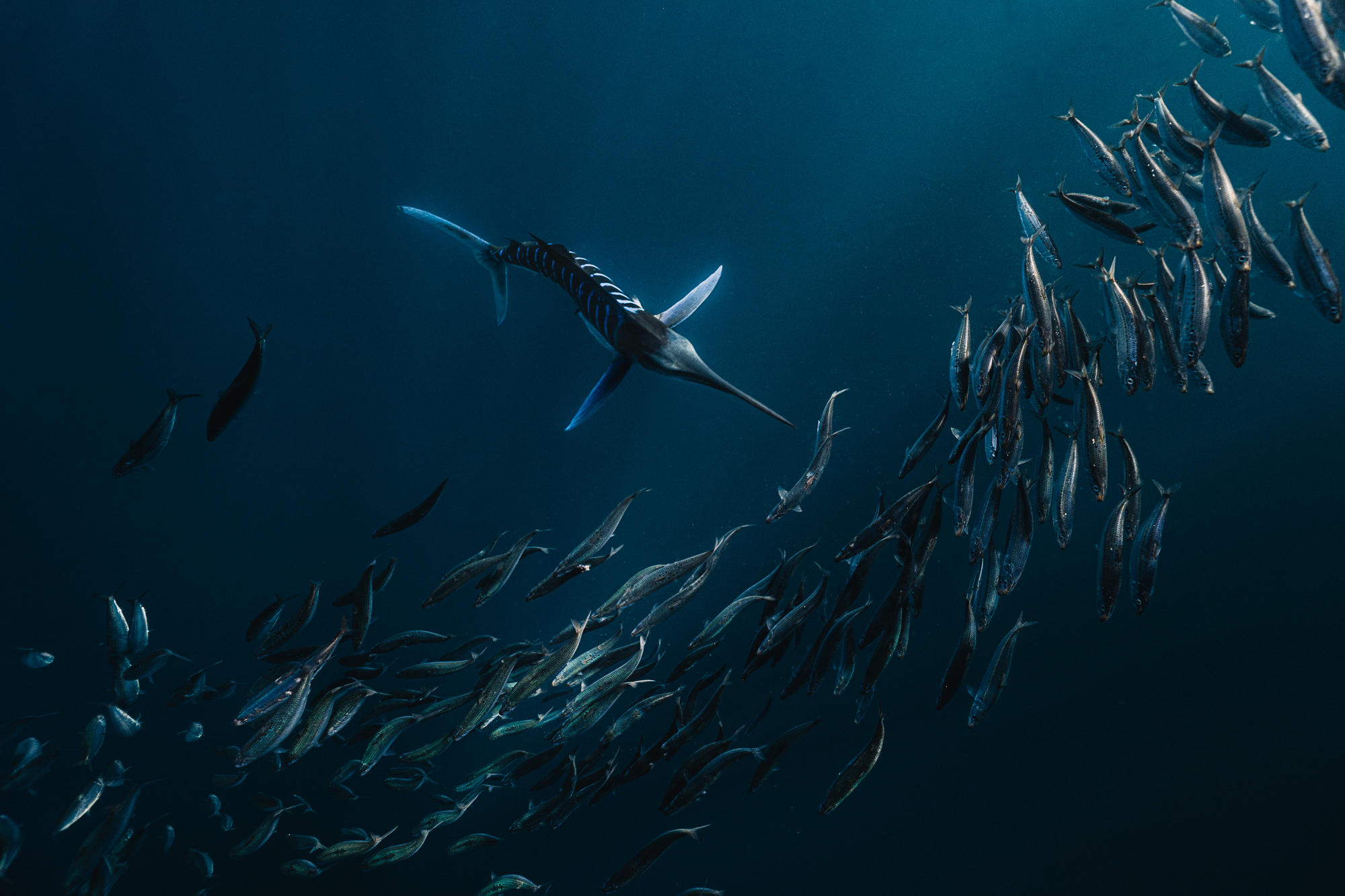 Dennoch sollte man sich als Fotografin nicht dazu verleiten lassen, die Kamera immer auf die Prädatoren gerichtet zu haben. Auch wenn diese sich manchmal von dem Schwarm entfernen: Immer beim Bait Ball bleiben. Denn dieser ist die Beute, zu der alle wollen. Gleichzeitig deutet ein längerer Rückzug der Marlins darauf hin, dass man als Mensch zu nah am Schwarm ist. Die Tiere sehen in uns Menschen dann andere Prädatoren, vor denen sie Respekt haben und sie ziehen sich zurück.