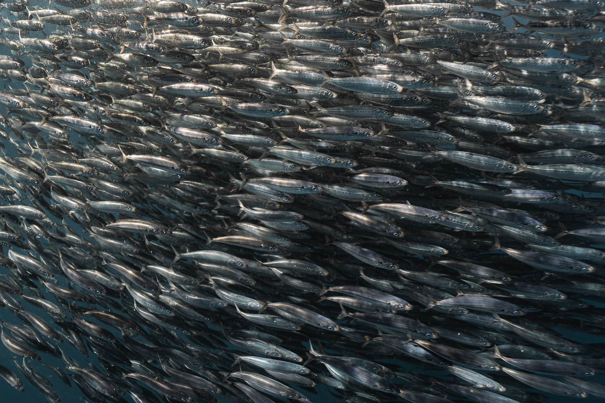 Wie immer in der Fotografie, spielt auch in der Unterwasserfotografie das Licht eine große Rolle. Um einen Sardinenschwarm möglichst gut ablichten zu können, bietet es sich an, die Sonne im Rücken zu haben, damit das zu fotografierende Objekt gut ausgeleuchtet ist. Zudem werden Schwebeteilchen im Gegenlicht besonders sichtbar, was zwar gezielt als Bildelement genutzt werden kann, ansonsten aber eher störend ist. Denn selbst bei eigentlich sehr klaren Wasserverhältnissen kann es sein, dass man nach einiger Zeit viele Schwebeteilchen um sich hat, wie etwa Schuppen, die die Tiere verlieren.