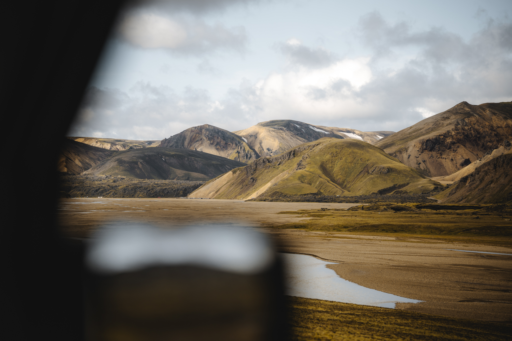 Und schon ging es los in Richtung Hochland zu unserem ersten Stopp, nach Landmannalaugar, einem wunderschönen Wandergebiet in atemberaubender Kulisse. Doch bereits auf dem Weg dorthin mussten wir mehrmals anhalten, um die ersten Fotos zu machen. Man spürt förmlich das Abenteuer, denn seit geraumer Zeit sind wir keinem anderen Auto begegnet. Dabei konnten die 105mm Brennweite des 28-105mm bereits voll überzeugen. Die Qualität und Schärfe der Details in den Fotos sind einfach genial.
