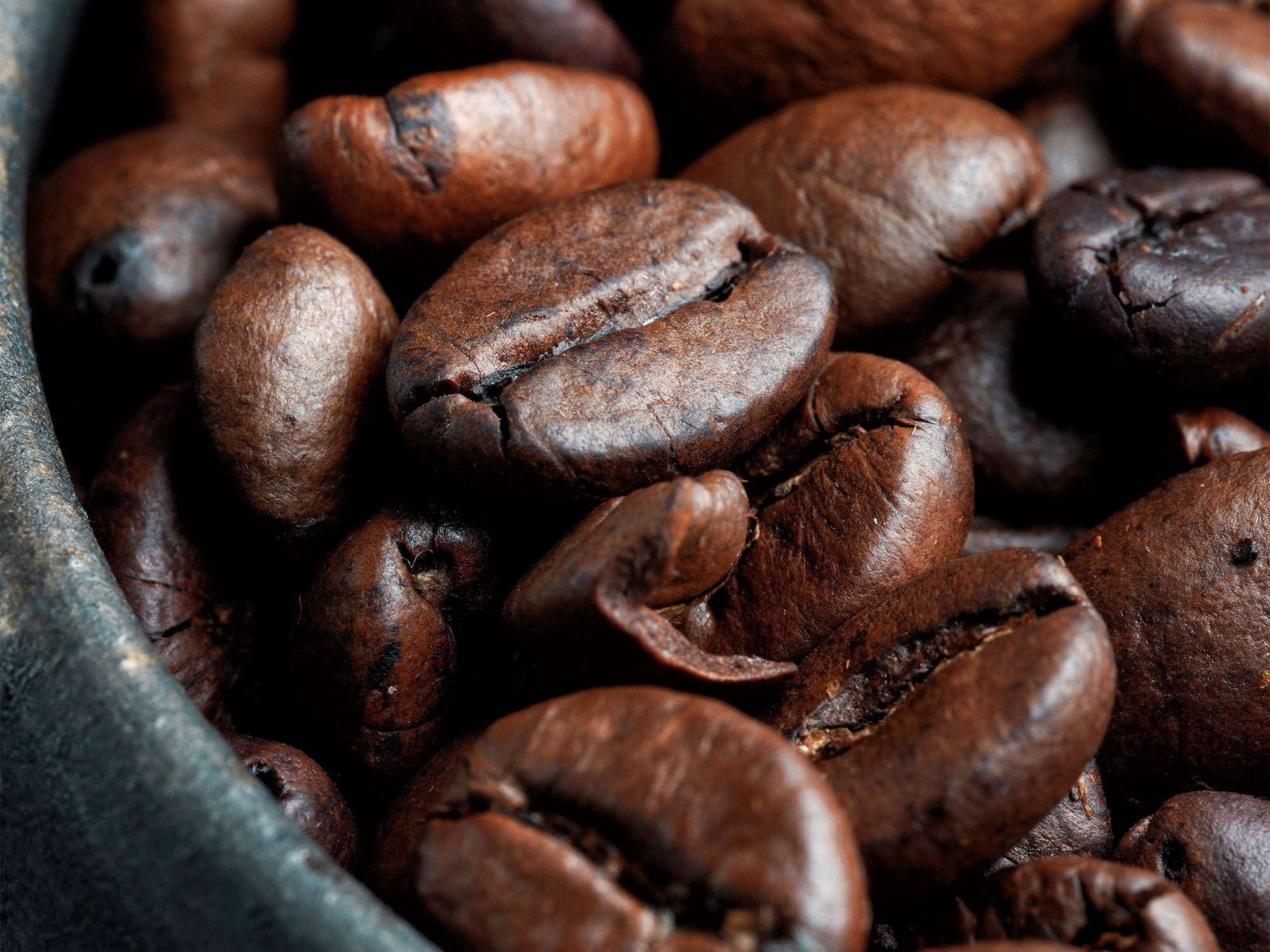 Ein paar Kaffeebohnen auf der schicken Lambda-Mühle. Die Kaffeebohnen sind rund 10 mm lang. Mit diesem Wissen kann man abschätzen, dass wir hier am maximalen Abbildungsmaßstab des 105er Makroobjektivs angelangt sind. Er beträgt 1:1.