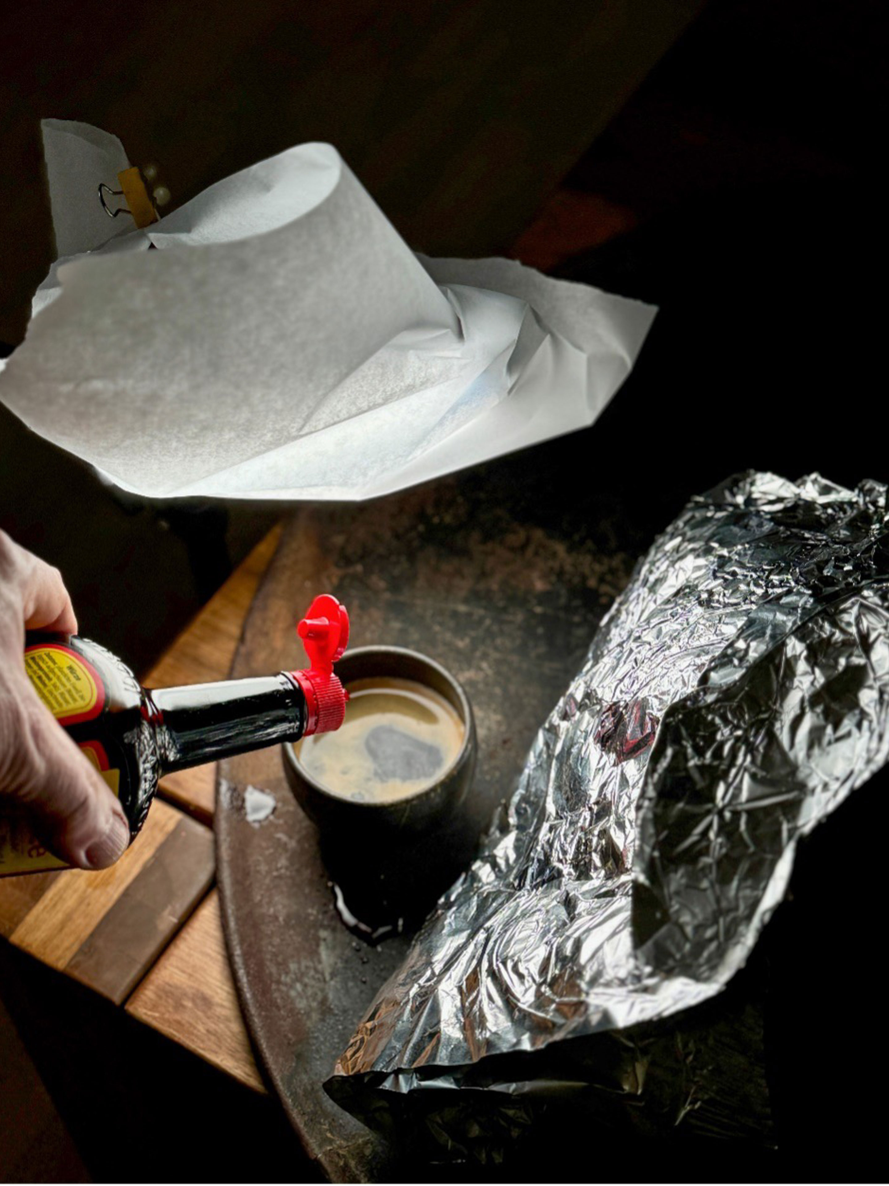 Für die Tropfen würde man normalerweise eine Pipette mit Kaffee einsetzen. Genauso gut taugt aber auch eine Maggiflasche. Erstens weil Maggi wie Kaffee aussieht und zweitens, weil man damit die Tropfen gut dosieren kann. Maggi ist auch sonst ein kleiner Universalschatz. Nicht nur schmeckt damit alles besser, weil es Glutamat enthält. Maggi taugt auch prima, wenn Ihr Whiskey oder Rum imitieren wollt. Gebt einfach ein paar Spritzer in ein Glas Wasser. Das Ergebnis sieht auf einem Foto genauso aus wie die teure Spirituose.