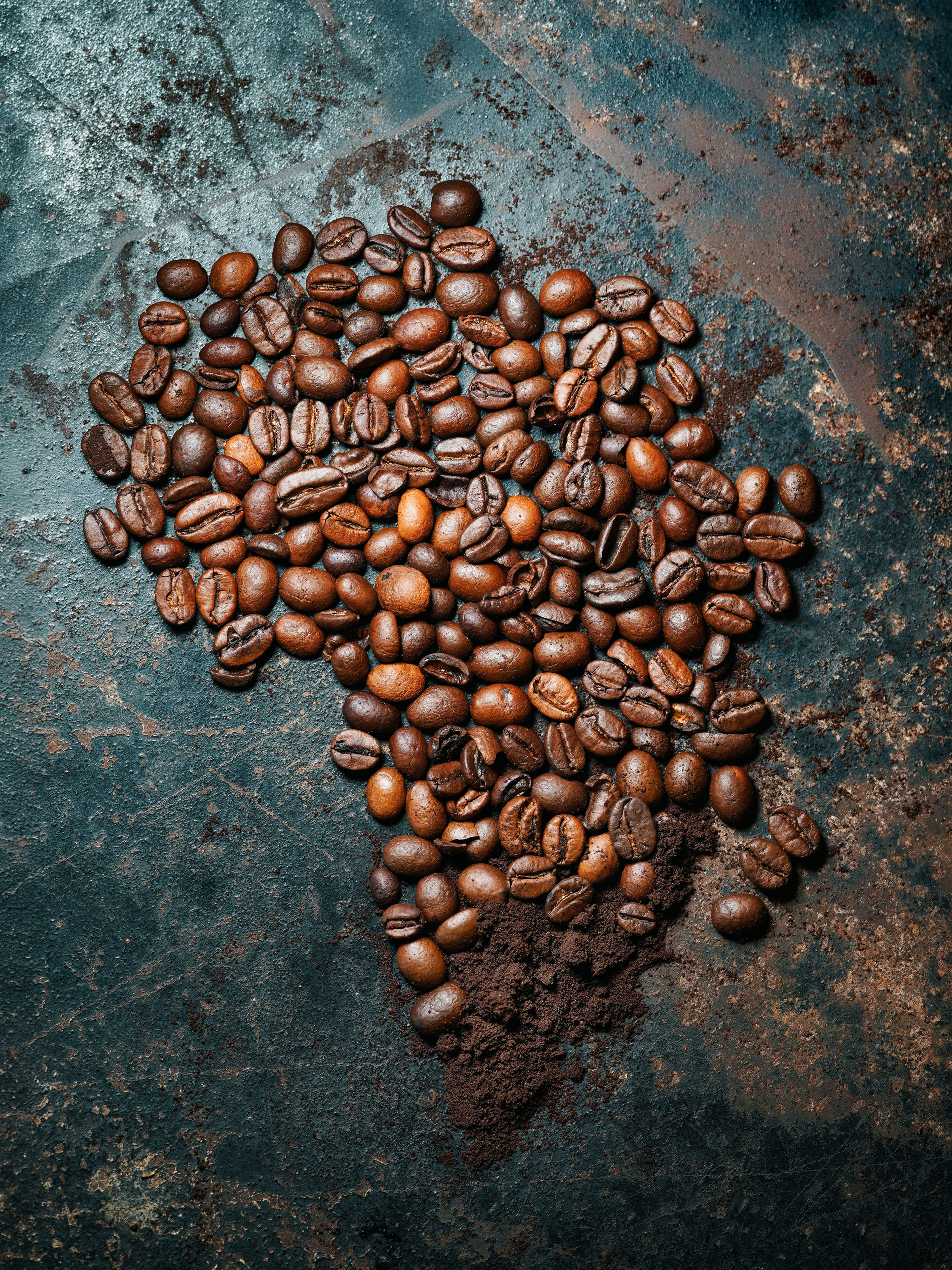 Und jetzt kommt noch zum Abschluss der Kontinent Afrika, mit Kaffeebohnen nachempfunden. Wieder kommt das gleiche Licht wie für die ersten Fotos zum Einsatz, wieder das 105er-Makro-Objektiv.