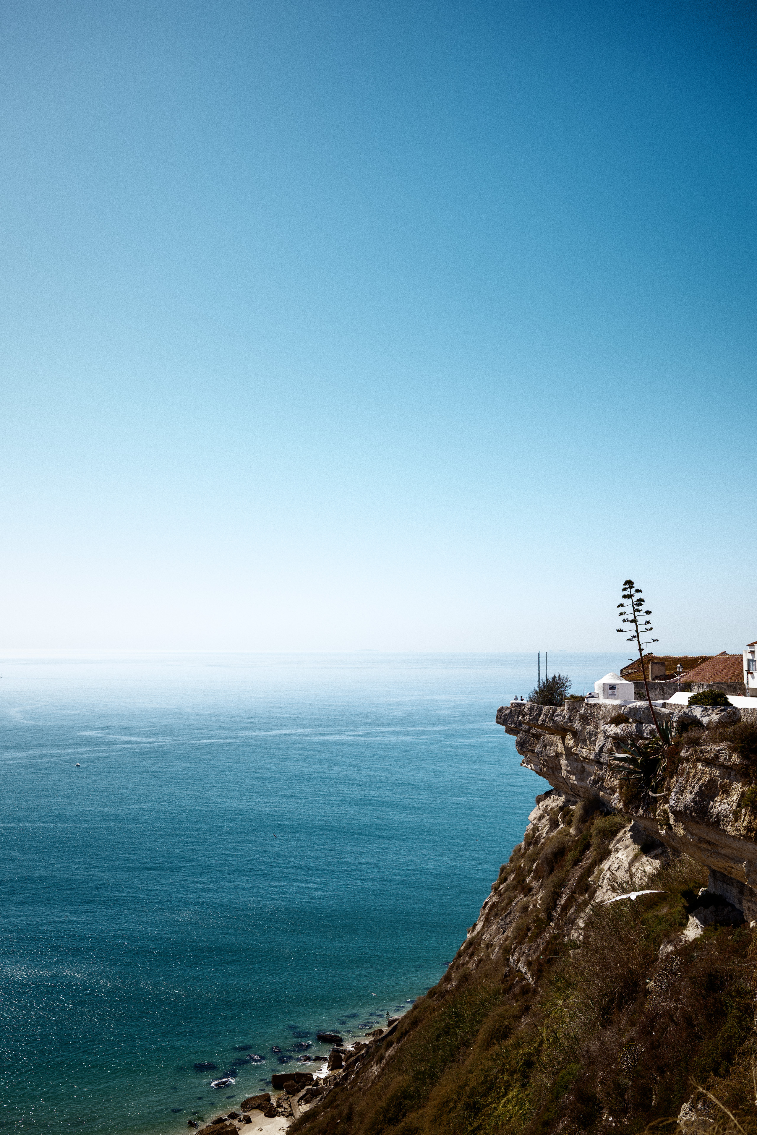 Irgendwann mussten wir Lissabon verlassen und fuhren weiter Richtung Norden. Unser nächstes Ziel war Nazaré, ein Ort, der für seine gigantischen Wellen bekannt ist. Wir hofften natürlich auf spektakuläre Bedingungen – allerdings waren wir zur falschen Jahreszeit dort. Die berühmten Wellen entstehen meist im Winter, wir waren im Oktober dort. Also erwarteten uns strahlende Sonne und fast spiegelglattes Wasser. Trotzdem war es ein beeindruckender Ort. Wir gingen hinauf zum Farol da Nazaré, um den Blick über den Atlantik zu genießen und die Weite der Landschaft