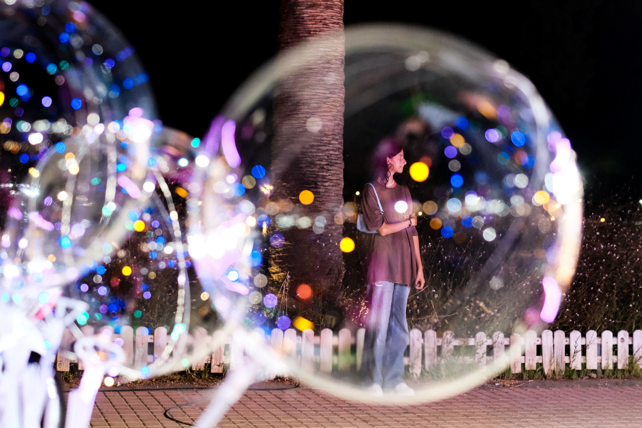 Bei dem Foto mit den Ballons und den Lichtern darin, wollte ich auf die Person dahinter fokussieren, um es so wirken zu lassen, als befinde Sie sich im Inneren des Ballons.
