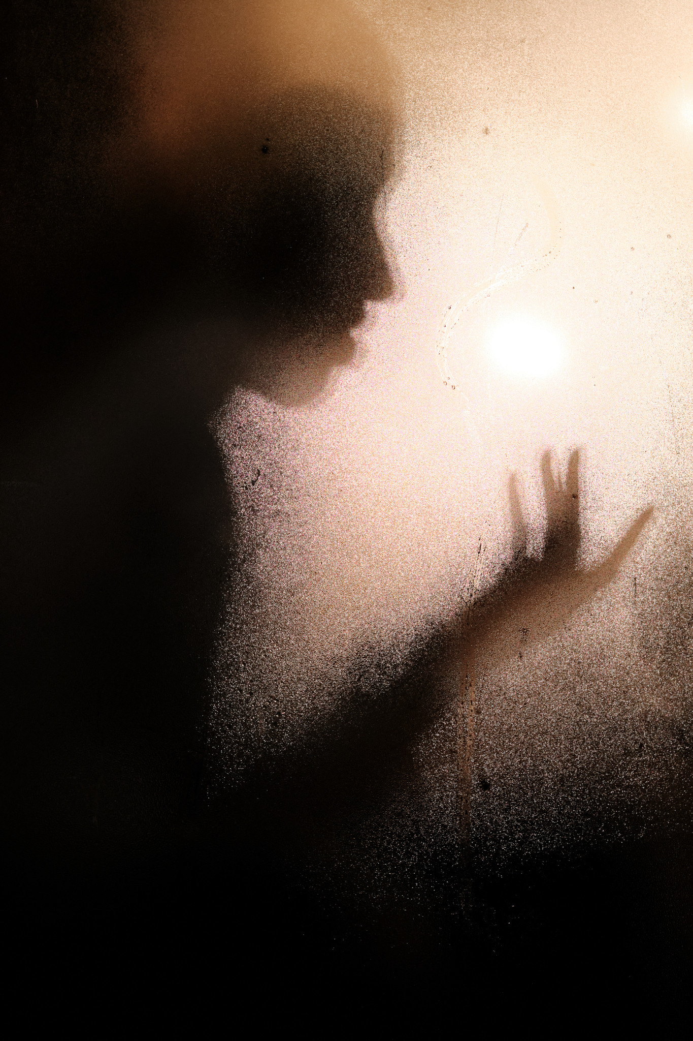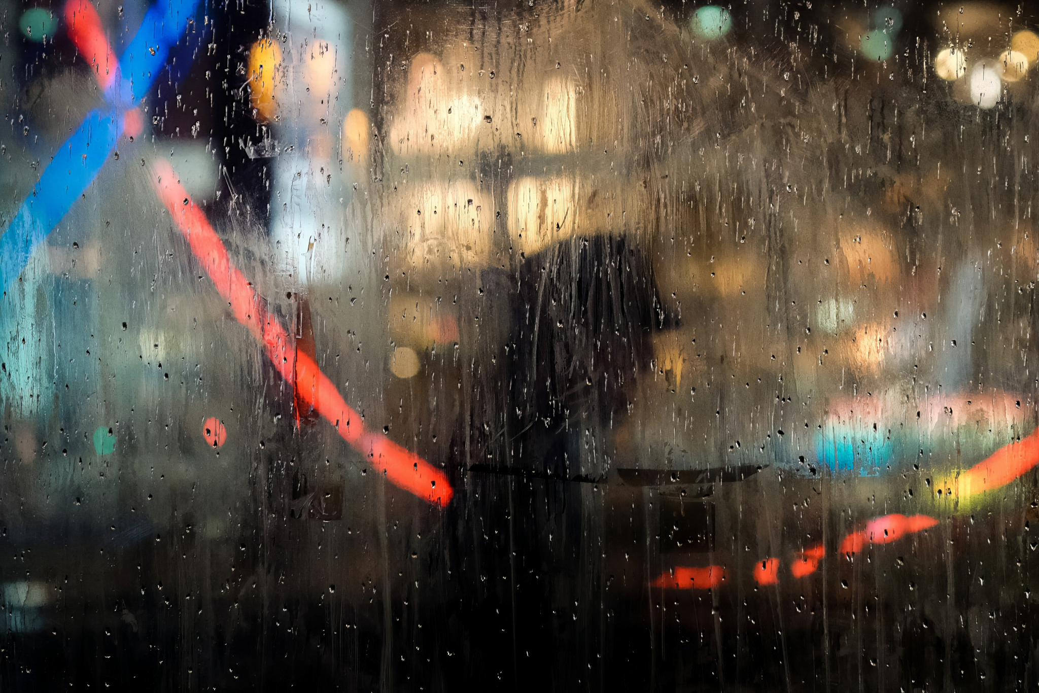 - Durch Fenster eines Cafés, am besten, wenn diese beschlagen oder mit Regentropfen versehen sind.