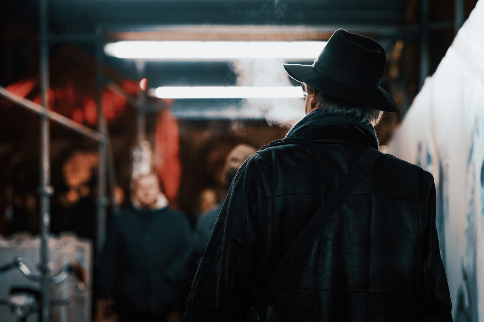 Da ich Fotos mag, die auf eine Weise mysteriös oder abstrakt sind, spricht mich das Zitat von Saul Leiter sehr an. Meine Fotos sind zwar nicht immer so abstrakt wie es bei ihm der Fall ist, aber manchmal eben doch oder auf andere Weise. Ich möchte dabei auch nicht kopieren. Sein Zitat suggeriert mir vor allem eine gewisse künstlerische Freiheit – es muss nicht immer alles perfekt scharf sein oder bestimmten Regeln folgen. Das muss es grundsätzlich nicht in der Street Photography und das muss es noch weniger, wenn die Dunkelheit zum Experimentieren einlädt.