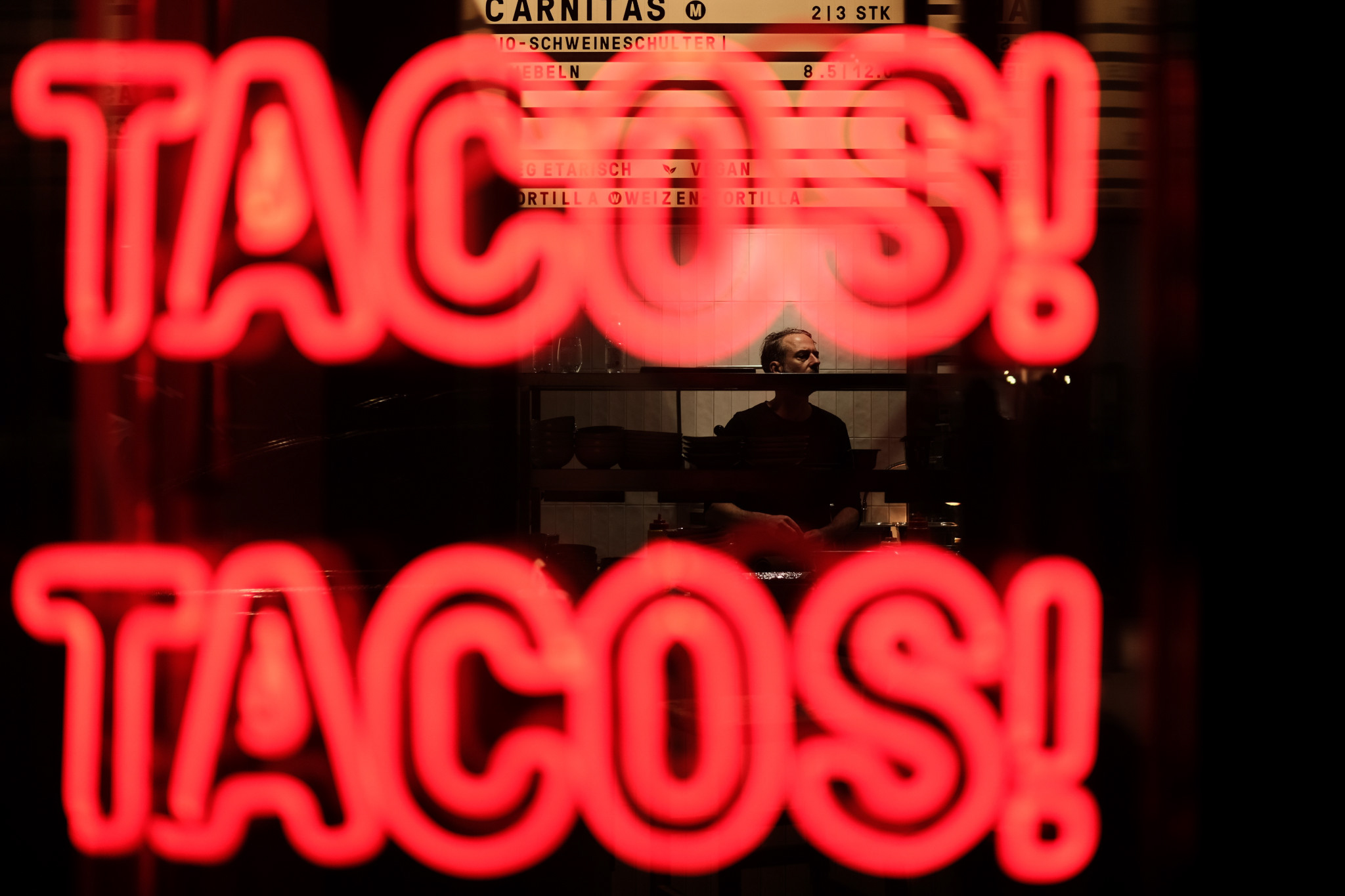 Ein „Klassiker“ für den Anfang ist die indirekte Beleuchtung mit Hilfe von Schaufenstern. Das geht in Frankfurt zum Beispiel wunderbar auf der Zeil oder in der Goethestraße. Dort befinden sich manchmal riesige LCD-Screens, die so hell sind, dass die Kamera gar kein Problem mit der Belichtung hat und schnellere Verschlusszeiten zulässt. Wichtig ist grundsätzlich nicht zu nah an die Lichtquelle heranzutreten. Die Szene soll sich davor abspielen, um das Licht nutzen zu können. Ich möchte z.B. nicht direkt das Schaufenster selbst ablichten. Im Zweifel lieber einen Schritt zurück gehen.