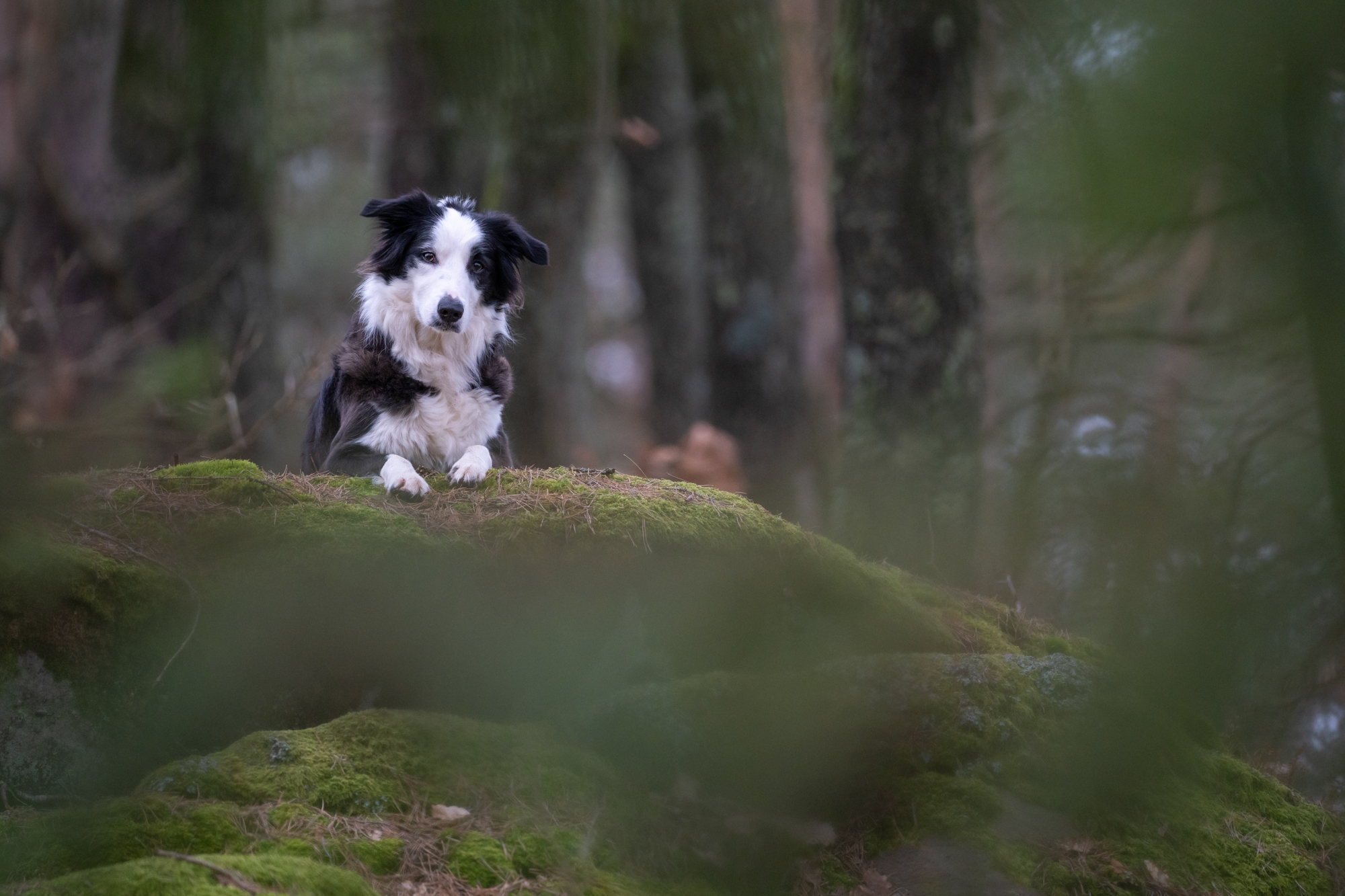 Neben der Autofokuspräzision bei schnellen Motiven, wollte ich auch herausfinden, wie gut das SIGMA 500mm F5.6 DG DN OS | Sports mit seinen elf Blendenlamellen den Hintergrund auflöst, wenn ich keine so offenen Landschaften wie bei den Alpengämsen habe. Ein Motiv, das sich geduldig herumkommandieren lässt, hilft bei solchen Tests ungemein, also schnappte ich mir meine Border Collie Hündin und ab gings in den Wald.
