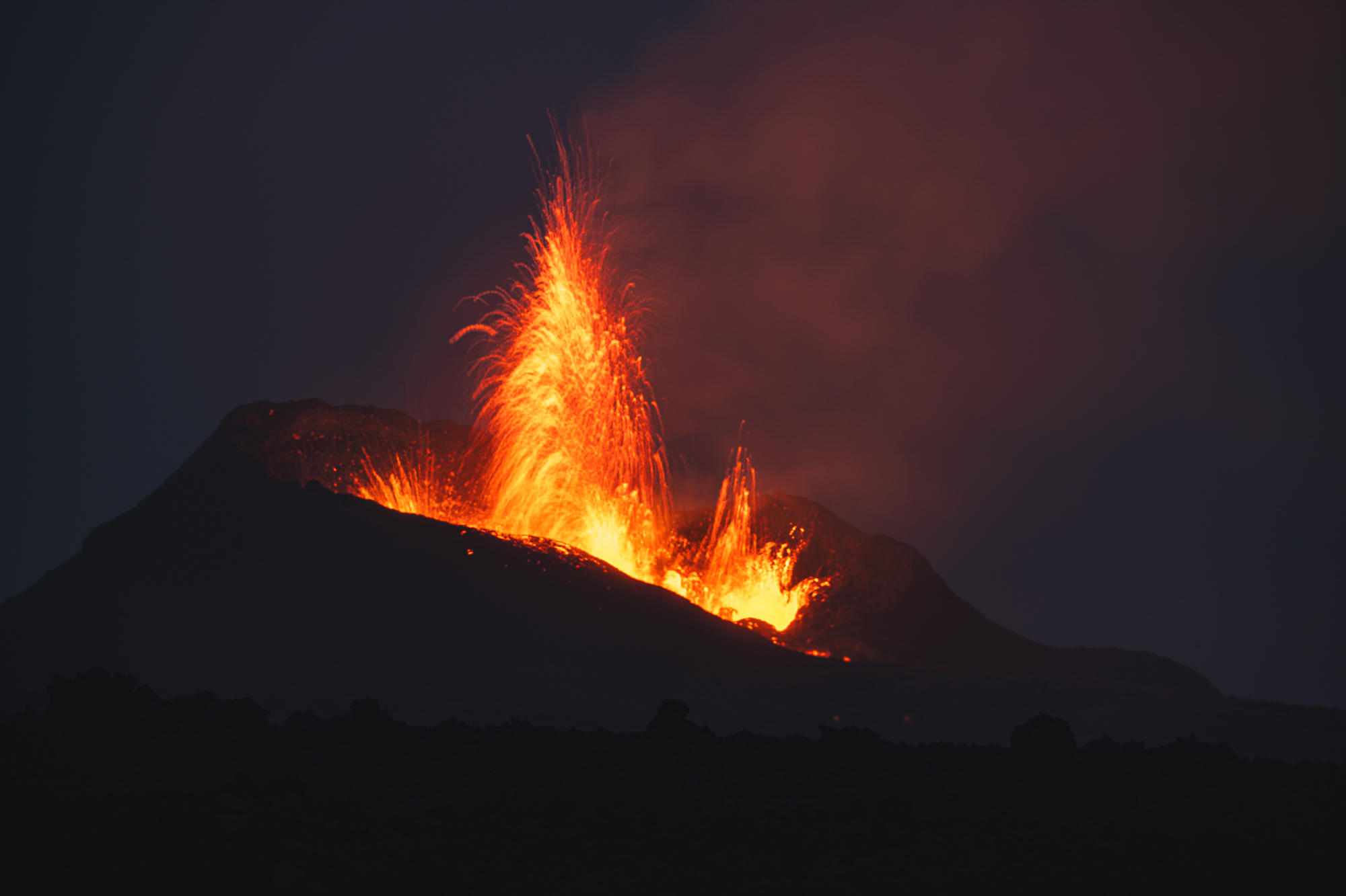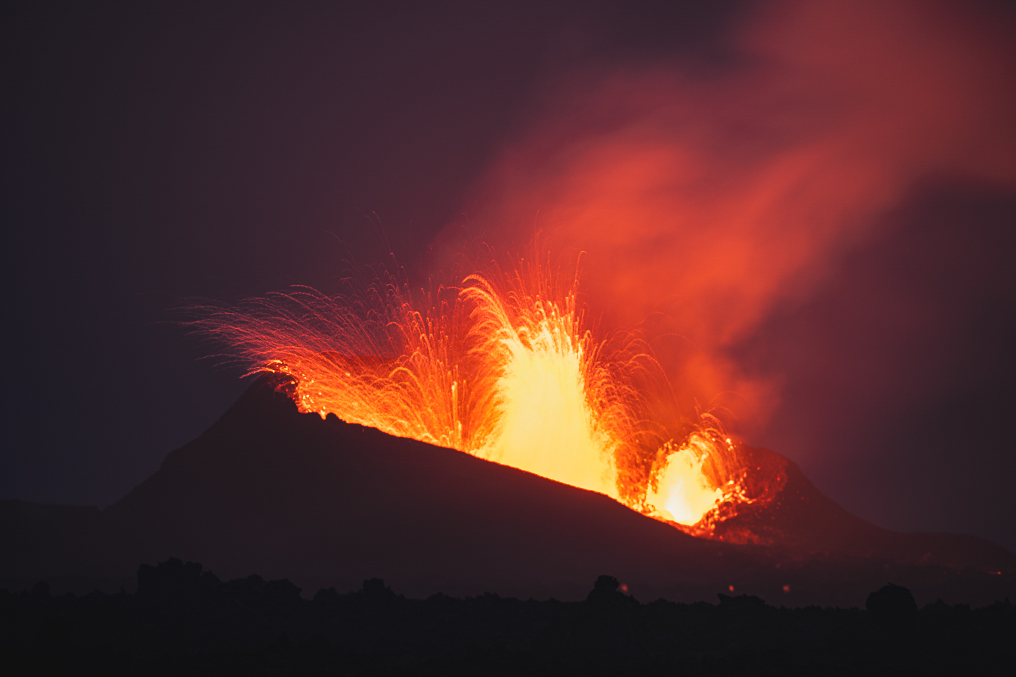 Natürlich mussten wir das gesehene sofort mit der Kamera festhalten. Das hat sich als schwieriger herausgestellt, als wir vorher dachten. Durch die unglaubliche Hitze flimmerte die gesamte Luft neben dem Vulkan und über dem Lavafeld, sodass der Autofokus nicht zuverlässig funktionierte. Wir nutzten unser Sigma 100-400mm F5-6.3 DG DN OS | Contemporary und stellten auf manuellen Fokus. Nach einigen Versuchen hatten wir ein scharfes Bild und stellten die Kamera dann auf Intervallaufnahme, da die Auswürfe zufällig kamen. Die Kamera stand auf einem Stativ mit dem Wunsch nach einer längeren Belichtungszeit, um die ausgeworfenen Lavabrocken als Striche darzustellen. Wir wussten nicht, welche Belichtungszeit für dieses Szenario am besten passen könnte, und haben mit Zeiten zwischen 1-10 Sekunden experimentiert. Für uns hat sich eine Belichtungszeit von 1-2 Sekunden als optimal herausgestellt.